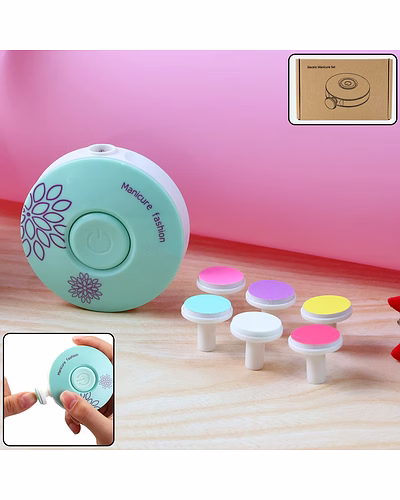 Baby Electric Manicure & Nail Care Set – Compact One-Touch Nail Buffer / Polisher with Interchangeable Heads for Quick At-Home Manicure & Pedicure Grooming Description :-Give your nails a salon-fresh finish in minutes with this compact electric manicure tool. The ergonomic, palm-fit design and one-touch control make shaping, smoothing, and shining easy for beginners as well as regular users. A gentle, low-noise motor powers interchangeable heads to file rough edges, remove ridges, refine the surface, and buff to a natural gloss—without the mess of manual filing. Lightweight and travel-friendly, it slips into a makeup pouch or drawer and is ready whenever you need quick touch-ups before meetings, travel, or events. Simple to clean and maintain, it’s a practical daily-use grooming accessory for neat, healthy-looking nails. Key Features :- Electric nail grooming system for fast, even results at home One-button operation with steady, low-vibration performance Multiple interchangeable heads for filing, smoothing, polishing, and buffing Compact, palm-size body for easy handling and precise control Low-noise motor suitable for quick touch-ups and regular maintenance Easy to clean; snap-on heads remove for rinsing/wiping after use Travel-ready, lightweight design; ideal for keeping in handbag or drawer Ideal For :- At-home manicures and pedicures with minimal effort Busy professionals needing quick pre-meeting nail touch-ups Students and travelers who prefer portable grooming tools Gifting as a practical self-care accessory Specifications :- Product Type: Electric manicure & nail care tool set Operation: Battery-operated (portable, wire-free) Controls: Single power button Attachments: Interchangeable heads for filing, smoothing, polishing, buffing Noise Level: Low-noise operation Care & Cleaning: Detach heads and wipe clean; store dry after use Usage Guidance: Use short, light strokes on clean, dry nails; do not apply excessive pressure Keywords :- baby nail care set , electric manicure set , nail buffer for babies , nail polisher , compact nail care tool , at-home manicure kit , pedicure grooming set , infant nail care , baby grooming kit , safe nail trimmer , gentle nail care device , portable nail care set , DIY baby manicure , child nail grooming tool Dimension :- Volu. Weight (Gm) :- 106 Product Weight (Gm) :- 87 Ship Weight (Gm) :- 106 Length (Cm) :- 16 Breadth (Cm) :- 10 Height (Cm) :- 3
