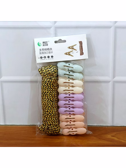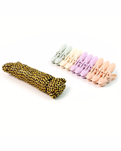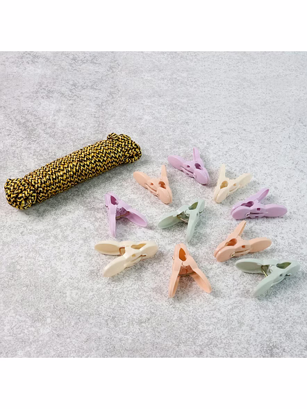 Clothes Drying Rope with Multipurpose Cloth Clips (1 Set)