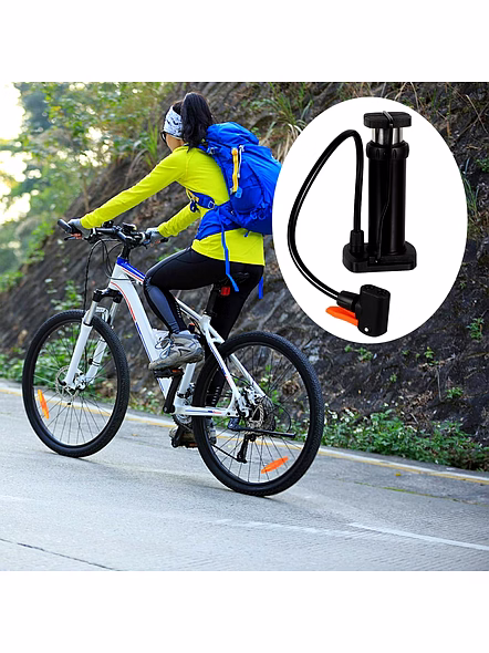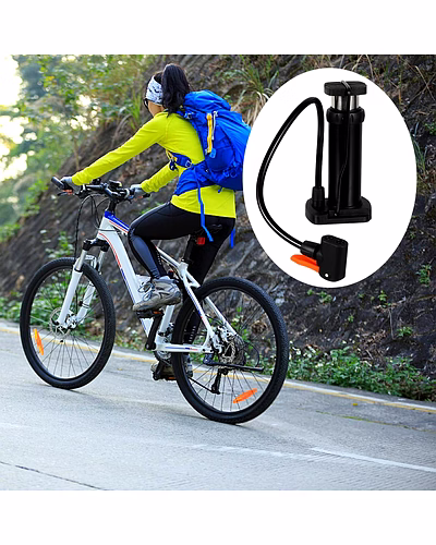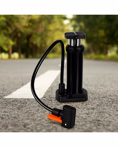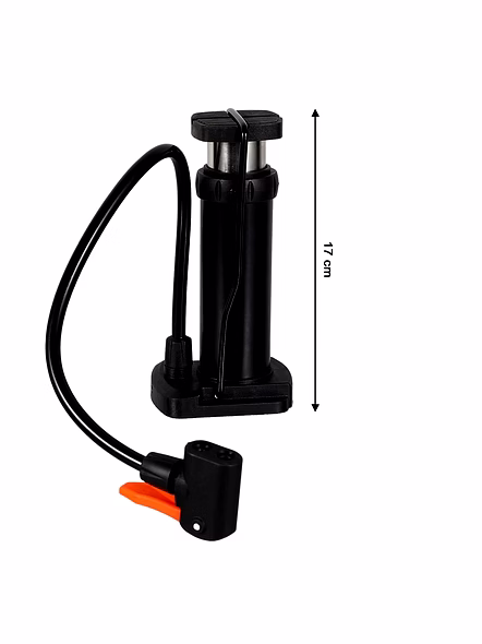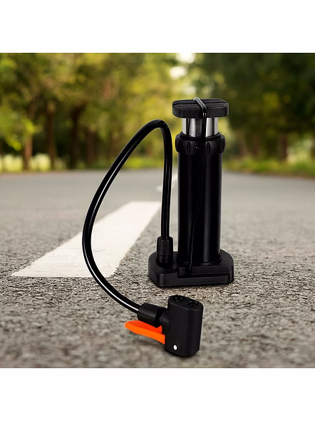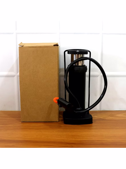 Compact Mini Foot-Operated Air Pump with Hose & Locking Valve Head – Portable Tyre Inflator for Cycles, Balls & Inflatables (1 Pc) Description :- Be ready for quick top-ups anywhere with this sturdy mini foot pump. The vertical cylinder design delivers strong air with minimal effort, while the textured foot pad gives a stable push on any surface. A flexible hose reaches valves comfortably and the locking head grips firmly to prevent leaks during inflation. Lightweight and travel-friendly, it tucks into a backpack, car boot, or bicycle basket—perfect for routine tyre maintenance and emergency use on the go. Supplied in a practical brown box for easy storage. Key Features :- Foot-power efficiency: Vertical stroke generates higher pressure with less effort than hand pumping. Leak-secure valve head: Locking lever helps seal on common bicycle valves (Schrader; adapter(s) as supplied). Flexible hose reach: Comfortable access to awkward valve positions on cycles and inflatables. Stable footing: Textured pedal and wide base reduce slip while pumping. Portable build: Compact, lightweight body for travel, commuting, and roadside kits. Multi-use: Suitable for cycle tyres, sports balls, swim rings and other small inflatables (with compatible needles/adapters). Low-maintenance: Wipe-clean surfaces; durable construction for repeated use. Ideal For :- Daily cycle tyre top-ups at home or during commutes Keeping in the car/bike toolkit for roadside emergencies Schools, hostels, and clubs for inflating sports balls and inflatables Travel and outdoor activities where a compact, manual pump is handy Specifications :- Product Type: Mini Foot-Operated Air Pump Operation: Manual foot pump (vertical piston) Air Hose: Flexible, attached; locking valve head Valve Compatibility: Schrader (car/bike) by default; use included adapter(s) as supplied for other valves/balls Use Cases: Bicycle tyres, balls, inflatables Packaging: Brown box Care: Keep dry; store away from extreme heat; check hose/head periodically Keywords :- mini air pump , foot-operated air pump , compact tyre inflator , portable air pump , hose with locking valve head , cycle air pump , bicycle tyre inflator , ball inflator pump , inflatable air pump , manual foot pump , lightweight air compressor , multi-purpose inflator , portable foot pump , durable air pump Dimension :- Volu. Weight (Gm) :- 298 Product Weight (Gm) :- 261 Ship Weight (Gm) :- 298 Length (Cm) :- 10 Breadth (Cm) :- 8 Height (Cm) :- 18