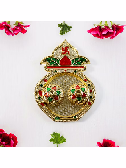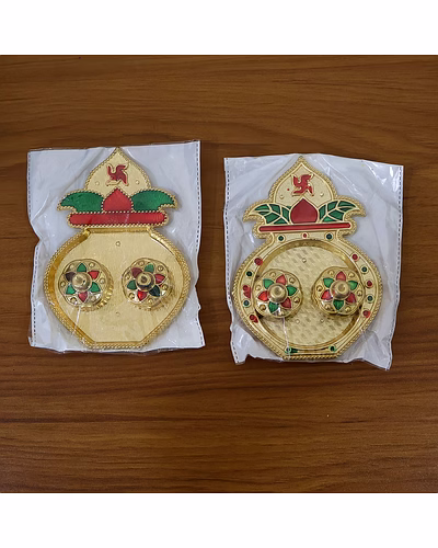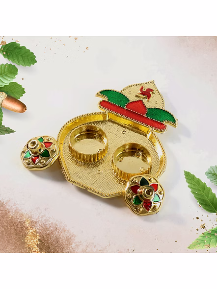 Decorative Plastic Kalash-Shape Double Kumkum / Dish Box – Colorful Pooja Thali Accessory for Roli, Chandan, Haldi & Tilak Storage (Mix Design, 1 Pc) Description :- Add traditional charm to your pooja space with this beautifully crafted plastic kalash-shaped kumkum box. Designed with intricate detailing and bright festive colors, it includes two removable containers for storing kumkum, roli, chandan, or haldi. The design features a raised kalash motif symbolizing prosperity, decorated with enamel-style red and green accents for a rich look. Lightweight yet durable, this plastic pooja accessory is ideal for everyday use, festive setups, or gifting during religious occasions. Key Features :- Traditional Kalash Design: Inspired by auspicious kalash motifs that symbolize prosperity and devotion. Dual Containers: Two small removable boxes for roli, kumkum, haldi, or chandan. Vibrant Colors: Hand-painted effect with red and green decorative detailing adds festive appeal. Lightweight & Durable: Made of sturdy plastic that’s easy to handle and clean. Mix Designs: Supplied in assorted color and pattern variations within the same design family. Easy to Clean: Simply wipe with a dry or slightly damp cloth to maintain shine. Ideal For :- Daily pooja and aarti rituals at home or temple Festive celebrations like Diwali, Navratri, Ganesh Chaturthi, and Raksha Bandhan Gifting during weddings, housewarmings, and festive occasions Use in pooja thalis, mandirs, or as a decorative element for home sanctuaries Specifications :- Product Type: Decorative Plastic Kumkum Box Set Material: High-quality plastic with gold-tone and enamel-effect finish Design: Kalash shape with two removable lidded containers Use Case: For kumkum, roli, haldi, chandan, or small pooja items Color: Multicolor (mix design supplied) Care Instructions: Wipe gently with dry cloth; avoid water exposure Packaging: 1 Piece (Mix Design) Keywords :- Decorative Kalash Box, Plastic Kumkum Dish, Double Kumkum Container, Pooja Thali Accessory, Roli Chandan Storage Box, Haldi Tilak Dish, Colorful Pooja Box, Religious Ritual Container,Kumkum Roli Holder, Temple Pooja Dish, Decorative Pooja Storage, Kalash-Shaped Kumkum Box, Pooja Room Organizer Dimension :- Volu. Weight (Gm) :- 63 Product Weight (Gm) :- 28 Ship Weight (Gm) :- 63 Length (Cm) :- 12 Breadth (Cm) :- 11 Height (Cm) :- 2