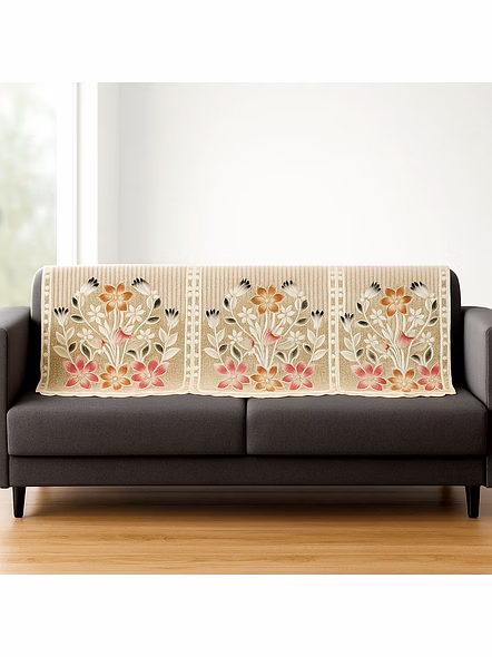 Elegant Floral Sofa Protector Cover – Premium Textured Fabric Runner with Scalloped Edges for 3-Seater Couch, Dust & Spill Resistant Home Décor Furnishing (139x28 Inch) Description :- Add a touch of elegance and protection to your living room with this premium floral sofa protector runner. Designed with intricate floral patterns and soothing tones, it perfectly blends traditional charm with modern functionality. The textured surface shields your sofa from dust, spills, and daily wear, while the scalloped border enhances its decorative appeal. Crafted from soft yet durable fabric, it ensures long-lasting use and easy maintenance. Ideal for daily home use or festive décor upgrades, this runner helps preserve your upholstery while enhancing your interior aesthetics. Key Features :- Attractive floral design with elegant woven detailing for a rich look. Protects sofa seats from dust, stains, and pet fur while adding style. Textured surface with scalloped edges enhances home décor appeal. Made from durable, easy-to-clean fabric suitable for daily use. Lightweight, foldable, and quick to spread or remove when needed. Non-slip design helps it stay in place during use. Machine washable and quick-dry for effortless maintenance. Ideal For :- Daily protection of sofa or couch seats in living rooms. Homes with children or pets to prevent damage and dirt. Perfect for festive home makeovers, guest preparations, or gifting. Ideal décor accessory for living areas, lounges, or offices. Suitable for 2-seater and 3-seater sofas, adding a warm and cozy touch. Specifications :- Product Type: Sofa Cover / Sofa Runner Protector Design Type: Floral Embroidered Pattern Size: 139 x 28 Inch (Approx.) Surface Material: Soft Woven Fabric Backing: Anti-slip surface for stable placement Edges: Scalloped borders with detailed stitching Wash Care: Hand or machine wash, gentle cycle, air dry Keywords :- elegant floral sofa protector cover, premium textured fabric sofa runner, 3-seater sofa cover dust resistant, spill resistant home décor sofa cover,textured fabric sofa slipcover 3 seater, premium home furnishing sofa cover, luxury sofa cover floral design,spill proof couch cover decorative, scalloped border sofa runner cover, multipurpose sofa protector cover floral Dimension:- Vol. Weight (Gm) :- 778 Product Weight (Gm) :- 362 Ship Weight (Gm) :- 778 Length (Cm) :- 40 Breadth (Cm) :- 32 Height (Cm) :- 3
