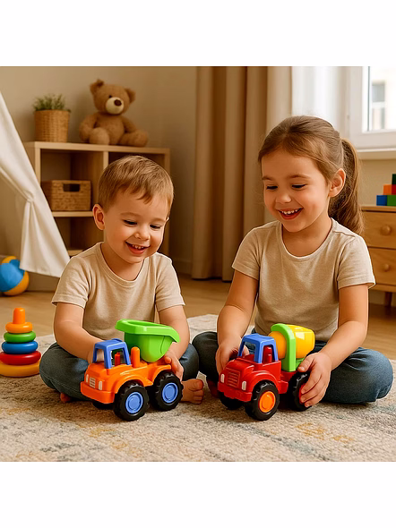 Funwoods 4 Piece Construction Vehicle Toy Set for Kids – Mini Pull-Back Engineering Trucks with Dumper, Cement Mixer, Tractor & Loader Description :- This 4-piece construction vehicle toy set offers endless fun for kids who love to play and build. Each miniature vehicle features bright colors, smooth-rolling wheels, and realistic construction details designed to capture a child’s imagination. The set includes four unique vehicles—a dumper, cement mixer, tractor, and loader—each carefully shaped and sized for small hands. These toys help develop fine motor skills, imagination, and coordination while keeping children entertained for hours. Perfect for indoor or outdoor play, this set brings the excitement of a construction site right into your home. Key Features :- Includes 4 colorful construction vehicles: dumper, mixer, loader, and tractor. Smooth wheels and rounded edges ensure safe and easy play for kids. Enhances hand-eye coordination and imaginative play. Durable, lightweight, and perfectly sized for toddlers and preschoolers. Ideal for both individual and group play sessions. Ideal For :- Toddlers and preschoolers interested in vehicles or building toys. Gifting on birthdays, parties, or festive occasions. Parents looking for educational and fun toys that promote motor skill development. Specifications :- Product Type: Construction Vehicle Toy Set Quantity: 4 Pieces Vehicle Types: Dumper, Mixer, Loader, Tractor Material: Child-safe plastic Age Group: 3+ years Keywords :- Funwoods construction vehicle toy set, 4 piece toy set, mini pull-back trucks,dumper toy, cement mixer toy, tractor toy, loader toy, construction toys for kids, pull-back vehicle set, toy trucks for toddlers,mini construction trucks, pretend play vehicles, durable toy cars, educational toy set, fun vehicle toys Dimension:- Volu. Weight (Gm) :- 2667 Product Weight (Gm) :- 912 Ship Weight (Gm) :- 2667 Length (Cm) :- 41 Breadth (Cm) :- 36 Height (Cm) :- 9