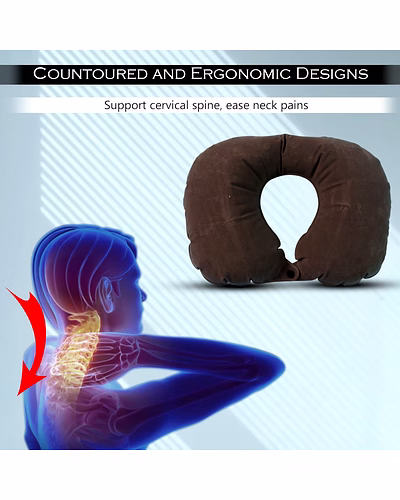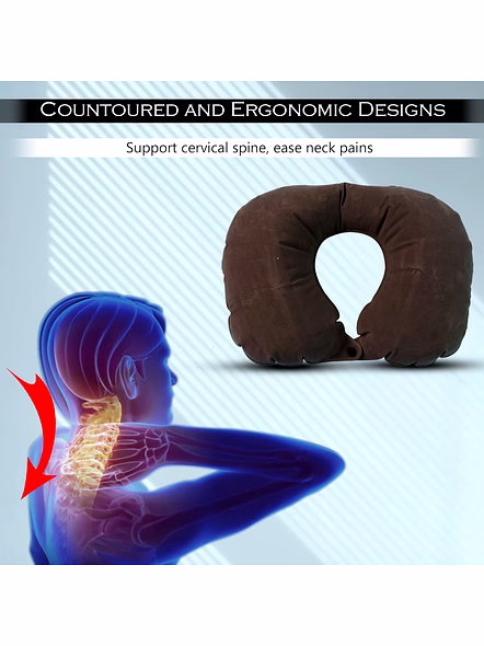 Inflatable U-Shaped Travel Neck Pillow with Soft Flocked Surface & Front Snap—Compact Air Cushion for Flight, Car, Train & Office Naps Description :- Arrive rested wherever you go with this inflatable U-shaped neck pillow. The ergonomic crescent design supports the head from both sides to reduce neck strain while you sit on flights, road trips, buses, or at your desk. A soft, velvety flocked surface feels gentle on skin, and the quick-inflate valve lets you reach your preferred firmness in a few breaths. When not in use, deflate in seconds, roll it up, and tuck it into any bag. A front snap keeps the pillow in place so it won’t slip when you doze, giving you stable, comfortable rest on the go. Key Features :- Ergonomic U-shape: Cradles head and neck for better alignment and reduced stiffness during long sitting. Quick-inflate/deflate valve: Adjust firmness easily; packs down ultra-small for travel. Soft flocked touch: Velvety finish for comfort against skin; easy to wipe clean. Front snap closure: Secures the pillow so it stays put while you sleep. Lightweight & portable: Ideal for carry-on bags, backpacks, and glove compartments. Durable air chamber: Resilient construction designed for repeated inflation cycles. Ideal For :- Flights, trains, buses, and car journeys Office power naps and study sessions Camping and weekend getaways where space matters Anyone who wants compact neck support without bulky foam pillows Specifications :- Product Type: Inflatable Travel Neck Pillow Material Class: PVC air chamber with flocked outer surface Closure/Retention: Front snap button Inflation: Manual via built-in valve; adjustable firmness Care: Wipe clean; store deflated in a dry place Usage: Adult/unisex travel accessory Keywords :- inflatable travel neck pillow , U-shaped neck pillow , soft flocked surface pillow , flight neck pillow , portable neck support , adjustable inflatable pillow , comfortable neck pillow , inflatable headrest , versatile travel accessory , soft inflatable pillow Dimension :- Volu. Weight (Gm) :- 80 Product Weight (Gm) :- 55 Ship Weight (Gm) :- 80 Length (Cm) :- 16 Breadth (Cm) :- 11 Height (Cm) :- 2