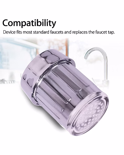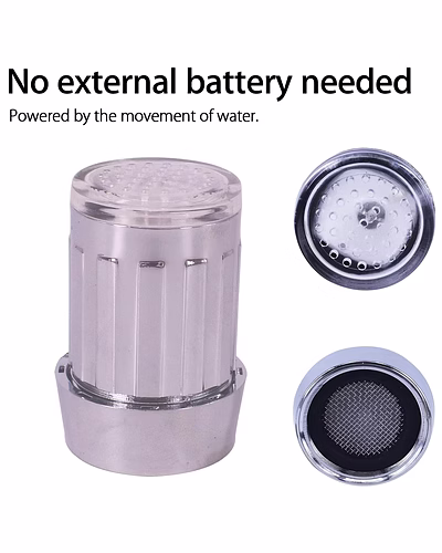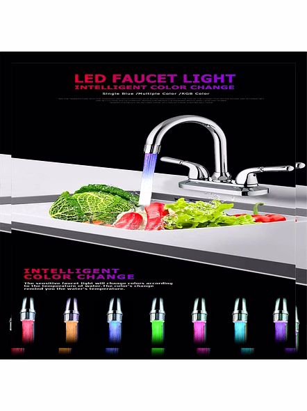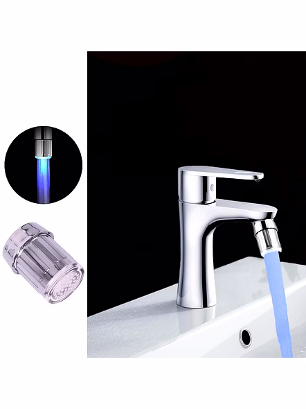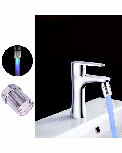 LED Light Stream Faucet Tap Adapter for Bathroom Kitchen Sink Water Light Lamp (1 Pc) Description :- Energy Saving & No Need Battery: This LED faucet light uses the flow of water to power on and off, saving energy and eliminating the need for batteries or electricity. Easy Installation: With a universal fit, this LED faucet light is easy to install and can be attached to most standard faucets in just a few minutes. Interesting Design: The one-color LED lights make washing your hands or doing dishes a fun and unique experience, adding a touch of color and style to your home. High-Quality Material: Made from durable, corrosion-resistant materials, this LED faucet light is built to last and withstand daily use, ensuring long-lasting performance. Wide Application: Suitable for use in the bathroom or kitchen, this LED faucet light is the perfect addition to any modern home or apartment, making it easy to add a touch of color and character to your space. Keywords :- LED faucet light , light stream faucet , LED tap adapter , color changing faucet light , water light lamp , faucet glow adapter , temperature sensor faucet light , RGB faucet light , LED water stream , luminous tap light , faucet attachment light , sink water LED , automatic color faucet , LED water flow light , glowing tap adapter , kitchen faucet accessory Dimension :- Volu. Weight (Gm) :- 56 Product Weight (Gm) :- 22 Ship Weight (Gm) :- 56 Length (Cm) :- 11 Breadth (Cm) :- 7 Height (Cm) :- 3