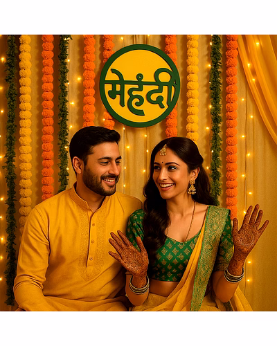 Mehndi Ceremony Wall Hanging / Backdrop Sign Name Plate (1 Pc)
