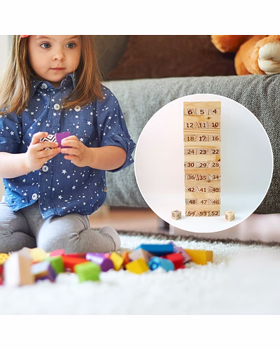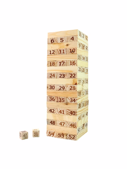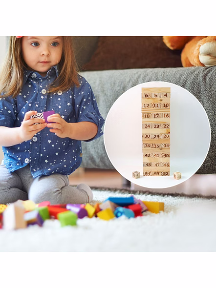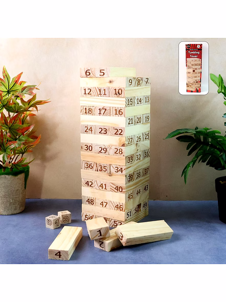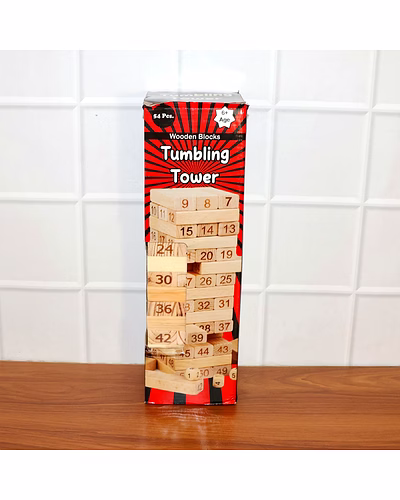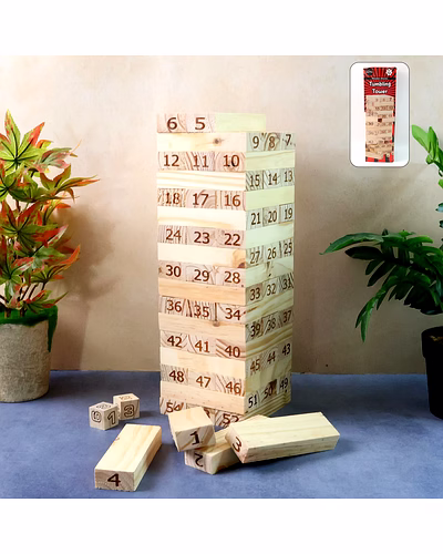 Numbered Wooden Tumbling Tower Game Set – Classic Stacking Blocks with Play Dice for Family, Party & Classroom Skill-Building Fun Description :- Bring everyone together with this timeless wooden tumbling tower. Precision-cut, smooth-finished blocks stack into a tall tower that players take turns removing and placing on top—steady hands and cool heads win! The numbered blocks let you add fun rule twists (roll the dice to choose which number to pull, set challenges, keep score), turning a simple game into countless variations. Crafted from natural wood with rounded edges, the set packs neatly for easy storage and travel. It’s equal parts entertainment and skill training—great for coordination, focus, patience, and social play. Key Features :- Classic stacking gameplay: Build the tower, pull a block, and restack without toppling. Numbered blocks + dice: Supports creative rule sets—roll to pick numbers, assign tasks, or score rounds. Smooth, kid-friendly finish: Sanded edges for comfortable handling and safer play. Durable natural wood: Rigid blocks hold shape for reliable stacking and long life. All-ages party favorite: Quick to learn, endlessly replayable, and fun in any group size. Compact storage: Packs away neatly; easy to carry to picnics, parties, and trips. Ideal For :- Family game nights, parties, get-togethers, and team-building Classrooms and activity centers for motor-skills and focus practice Gifts and return favors where you want screen-free fun Cafés, waiting areas, and lounges as a casual tabletop game Specifications :- Product Type: Wooden Tumbling Tower / Stacking Block Game Material: Natural wood blocks; printed/engraved numbering; play dice included Finish: Smooth surfaces with rounded edges Gameplay: Remove and restack blocks to keep the tower standing; use numbers/dice for challenge modes Recommended Use: Indoor tabletop play for kids and adults Packaging: 1 complete game set (tower blocks with dice) Category: Toys & Games – Educational & Family Games Keywords :- numbered wooden tumbling tower , stacking blocks game , classic block tower , wooden block game , family game set , party game , classroom activity , safe wooden blocks , fun learning game , strategic stacking game , indoor game set , hand-eye coordination game, durable wooden blocks Dimension :- Volu. Weight (Gm) :- 710 Product Weight (Gm) :- 1944 Ship Weight (Gm) :- 1944 Length (Cm) :- 35 Breadth (Cm) :- 10 Height (Cm) :- 10