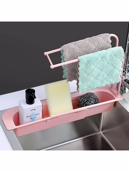 Over-Sink Expandable Sink Caddy with Dual Towel Bar & Drip Tray – Adjustable Dish Sponge Holder, Soap Organizer & Cloth Drying Rack for Neat, Hygienic Kitchens Description :- Bring instant order to your sink area with this expandable over-sink caddy. The deep tray keeps dish sponges, scrubbers, soap dispensers and brushes upright, while the elevated twin towel bar lets cloths dry fast without touching the countertop. Vented base helps water drain away into the integrated drip area, reducing odor and slime buildup. The sliding length adjustment fits most standard sinks and the slim profile leaves ample washing space. Built for daily kitchen use, it’s easy to lift out and wipe clean, making sink maintenance quick and fuss-free. Key Features :- Expandable fit: Sliding rail design adjusts to span most sinks for a stable, custom fit. 2-level organization: Deep storage trough for bottles and tools, plus dual towel bar to air-dry cloths and scrub pads. Hygienic drainage: Vented base and open sides improve airflow and reduce standing water. Countertop saver: Keeps soaps and sponges off the counter to prevent puddles and stains. Quick clean: Smooth, wipe-able surfaces; lift out to rinse in seconds. Sturdy build: Rigid body with reinforced rails for everyday kitchen workloads. Tool-free setup: Simply expand, rest on the sink edges, and start organizing. Ideal For :- Busy home kitchens needing a tidy, always-dry sink station Apartments, hostels, and rental homes where drilling isn’t allowed Families who want separate spots for soap, sponges, brushes, and towels Small sinks that need vertical drying space without cluttering the basin Specifications :- Product Type: Over-Sink Expandable Sink Caddy with Dual Towel Bar Function: Storage, drying, and organization for sink accessories Mounting: Over-sink, tool-free; expandable rail design Drainage: Vented base with open sides for airflow Material Class: Household kitchenware (plastic body with metal bars) Category: Home & Kitchen Keywords :- Over-sink sink caddy, expandable sink caddy, adjustable dish rack, sponge holder, soap organizer, dual towel bar, drip traysink storage rack, cloth drying rack, over-the-sink organizer, dish sponge holder, kitchen counter organizer,space-saving sink rack, stainless steel sink caddy, multi-functional sink organizer Dimension :- Volu. Weight (Gm) :- 528 Product Weight (Gm) :- 232 Ship Weight (Gm) :- 528 Length (Cm) :- 37 Breadth (Cm) :- 10 Height (Cm) :- 7