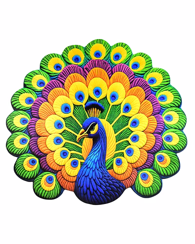 Premium Round Peacock Design Anti-Slip Floor Mat / Doormat – Soft Velvet Touch, Quick-Dry, Easy-Clean Home Decor Rug Description :- Bring a burst of art to your entryway or room with this vibrant round peacock floor mat. The richly detailed feathers create a striking centerpiece while the soft, velvety surface feels comfortable underfoot. A grippy backing helps the mat stay put on most hard floors, reducing slips near busy doorways. It’s designed for daily traffic, resists dust build-up, and cleans up quickly with a shake, vacuum, or gentle wash. Use it to elevate foyers, bedrooms, dressing corners, balconies, or puja areas—anywhere you want a pop of elegant color and an inviting feel. Key Features :- Eye-catching round peacock motif adds premium decorative appeal Soft, velvety top surface for comfortable stepping and barefoot use Anti-slip backing helps minimize sliding on tiles, marble, or laminate Quick-dry, low-maintenance construction—easy to shake, vacuum, or gentle wash Edges designed to reduce curling and maintain shape over time Colorfast print engineered to retain vibrancy with regular household care Lightweight and easy to move for cleaning or seasonal redecorating Ideal For :- Doorways, foyers, living rooms, bedrooms, and study corners Dressing/vanity areas to cushion standing time Balcony, patio door thresholds, or indoor garden nooks Festive home makeovers and gifting for housewarming or celebrations Photography backgrounds and decorative displays Specifications :- Product Type: Round decorative floor mat / doormat Surface: Soft velvet-touch print (easy-clean) Backing: Anti-slip base suitable for most hard floors Care: Shake, vacuum, or gentle hand wash; air dry Keywords :- peacock design floor mat , round doormat , velvet touch rug , quick-dry mat , soft velvet mat , peacock pattern rug , decorative floor mat , living room rug , washable floor mat, non-slip rug , indoor doormat , stylish home mat , designer floor rug , peacock print home decor Dimension:- Vol. Weight (Gm) :- 840 Product Weight (Gm) :- 279 Ship Weight (Gm) :- 840 Length (Cm) :- 61 Breadth (Cm) :- 68 Height (Cm) :- 1
