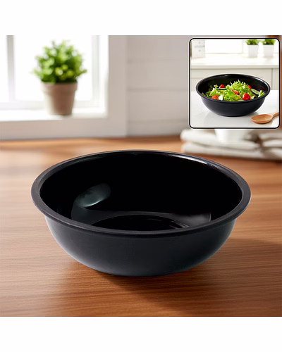 Plastic 6 Inch Black Round Deep Serving Bowl – Multi-Purpose Kitchen Bowl for Mixing, Serving, and Salads (1 Pc) Description :-Add elegance and functionality to your dining with this 6-inch Black serving bowl. Designed with a deep round shape and smooth glossy finish, it’s perfect for serving salads, curries, rice, snacks, and desserts. The classic Black color complements any kitchen décor or table setup, making it ideal for both everyday meals and festive gatherings. Lightweight yet durable, it is easy to handle, wash, and store—offering lasting performance for home or professional kitchen use. Key Features :- 6-inch deep round bowl ideal for serving and mixing Elegant Black color suits all dining themes and occasions Smooth surface with gloss finish for a neat, modern look Deep design prevents spills and helps in easy mixing Lightweight, durable, and resistant to stains and odors Stackable and easy to clean for daily convenience Food-safe and suitable for hot or cold dishes Ideal For :- Daily meals at home, office, or cafeteria Serving curries, salads, fruits, pasta, snacks, and desserts Restaurants, catering services, and buffets Gifting as part of kitchen essentials or dinner sets Specifications :- Product Type: Round deep serving bowl Size: 6 Inch Color: Black Material: Premium food-grade plastic Shape: Deep round with smooth edges Care: Wash with mild detergent; avoid abrasive scrubbers; store dry Keywords :- Plastic deep serving bowl, 6 inch round bowl, Black mixing bowl, Multi-purpose kitchen bowl, Plastic salad bowl, Deep round serving bowl, Mixing and serving bowl, Durable plastic bowl,Multi-use serving container, Plastic bowl for home and kitchen, Round food prep bowl, Compact serving bowl Dimension :- Volu. Weight (Gm) :- 280 Product Weight (Gm) :- 61 Ship Weight (Gm) :- 280 Length (Cm) :- 15 Breadth (Cm) :- 15 Height (Cm) :- 6