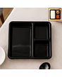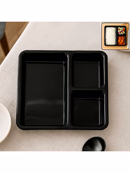 Plastic Multi-Compartment Meal Serving Tray – 3-Section Rectangular Dining Plate (1 Pc / Black)