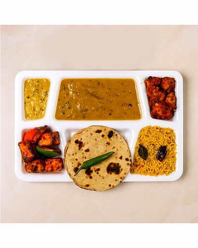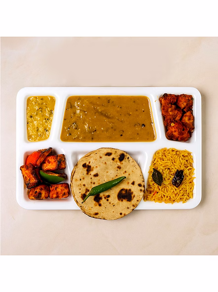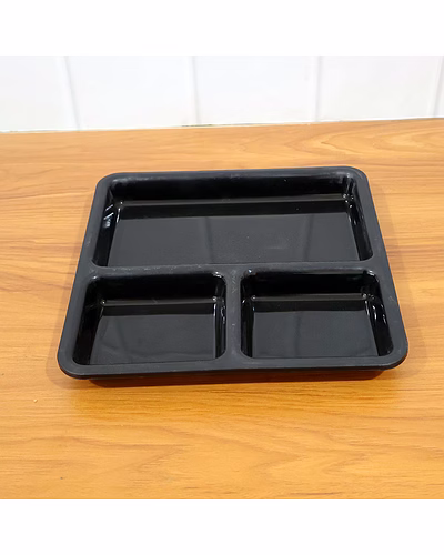 Plastic Multi-Compartment Meal Serving Tray – 3-Section Rectangular Dining Plate for Neat Portioning, Mess-Free Plating & Quick Cleanup - 23x22 Cm (Cafeteria/Thali Style / 3 Comapartment) Description :-Serve complete meals in one place with this smart 3-section tray. The roomy main compartment holds the staple dish while two side sections keep curries, salads, snacks, chutneys, or desserts neatly separated so flavors don’t mix. A smooth, food-safe surface wipes clean in moments and the raised rim helps contain sauces for tidier self-service. Light yet sturdy for everyday use, the tray stacks efficiently in the kitchen and brings hotel/hostel serving discipline to home dining—ideal for portion control, kids’ meals, and hassle-free cleanup after busy days. Key Features :- Three fixed compartments to separate mains and sides for organized plating Raised spill-guard rim keeps gravies and sauces contained Smooth, easy-clean surface for fast washing and drying Durable, everyday build suitable for home and canteen service Stackable form to save storage space in shelves and trolleys Lightweight for comfortable handling by kids and adults Ideal For :- Daily home meals where tidy plating and portion control matter Office pantries, canteens, hostels, and food courts Party buffets, picnics, and meal-prep setups Serving kids’ meals and snack assortments without mixing items Specifications :- Product Type: Sectioned meal/serving tray (3 compartments) Form Factor: Rectangular tray with integrated sections Edge Profile: Raised rim to reduce spills Care: Hand wash or gentle dishwash cycle; avoid abrasive pads; store dry Use Environment: Suitable for daily kitchen use, indoor/outdoor dining Keywords :- Plastic multi-compartment tray, 3-section meal tray, Rectangular dining plate,Portion control tray, Mess-free plating tray, Easy-clean serving tray, Durable plastic tray, Multi-section meal plate,Thali-style plate, Food-grade plastic tray,Organized meal plate, Plastic portion plate, Divided serving tray, Sturdy plastic thali Dimension :- Volu. Weight (Gm) :- 314 Product Weight (Gm) :- 137 Ship Weight (Gm) :- 314 Length (Cm) :- 23 Breadth (Cm) :- 22 Height (Cm) :- 3