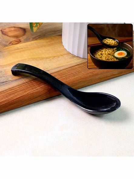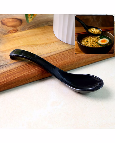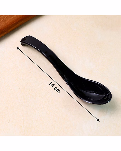 Plastic Soup Spoon – Deep Bowl, Ergonomic Handle, Break-Resistant Tableware for Noodles, Broths, Curries & Desserts (1 Pc) Description :-Serve and sip comfortably with this deep-bowl soup spoon made from durable, break-resistant plastic. The curved handle offers a steady, comfortable grip, while the smooth rim is gentle on the mouth for relaxed slurping of soups and broths. Its balanced profile lifts generous spoonfuls without spilling, making it equally useful for ramen, gravies, desserts, and tasting during cooking. Easy to wash and stack, it’s a practical everyday addition for homes, cafés, canteens, and catering counters. Key Features :- Deep, smooth bowl designed for soups, noodles, broths, gravies, and desserts Ergonomic curved handle for secure, comfortable holding Break-resistant, lightweight plastic suitable for daily use Smooth, food-safe surface that cleans quickly and resists stains Stackable, space-saving form for drawers and service counters Suitable for both serving and table use Ideal For :- Home dining and meal prep tasting Cafés, office pantries, hostels, and canteens Catering, buffet service, and takeaway counters Picnics and outdoor meals where lightweight tableware helps Specifications :- Product Type: Reusable soup/table spoon Material: Food-grade, break-resistant plastic Finish: Smooth, easy-clean surface Color: Black Care: Hand wash or gentle dishwash cycle; avoid abrasive pads and high heat; store dry Dimension :- Volu. Weight (Gm) :- 44 Product Weight (Gm) :- 10 Ship Weight (Gm) :- 44 Length (Cm) :- 14 Breadth (Cm) :- 4 Height (Cm) :- 3
