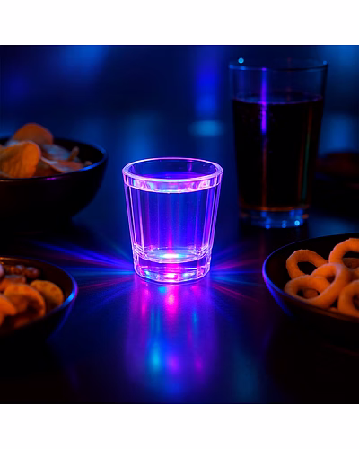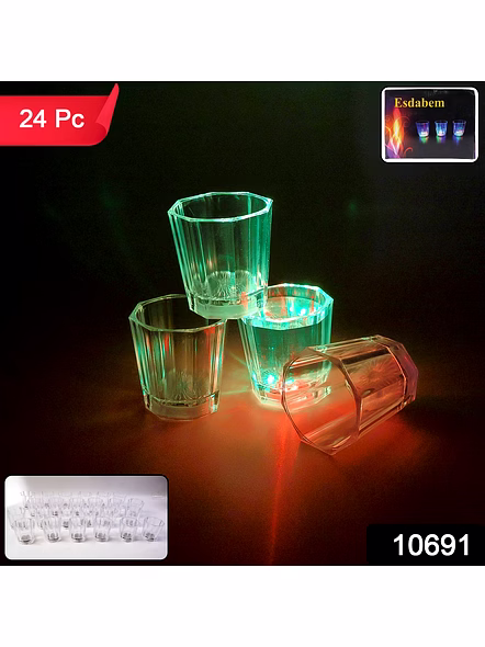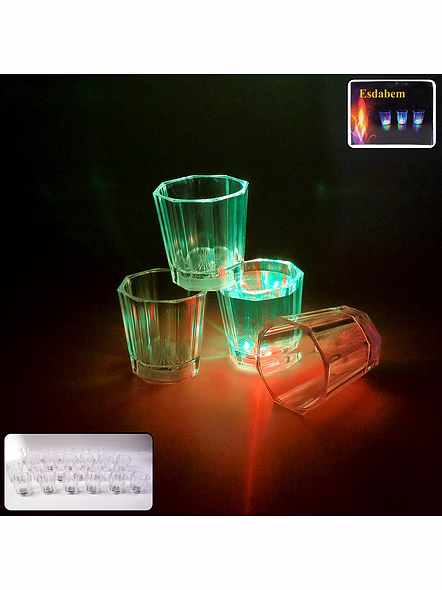 This premium LED light-up shot glass set is designed to add fun, excitement, and a vibrant glow to any celebration. Each shot glass features a built-in multi-colour LED light at the bottom that activates when the glass is tapped or lifted, creating a stunning illuminating effect ideal for parties, events, night gatherings, and festive celebrations. The transparent plastic body enhances the glow, making the drinks inside look extra appealing and stylish. Made from high-quality, durable plastic, these glasses are lightweight, reusable, and safe for regular use. Perfect for serving shots, mocktails, tasters, or special party drinks, they help create a memorable atmosphere for birthdays, house parties, clubs, lounges, weddings, and holiday celebrations. The set includes 24 LED glasses, making it suitable for group events, gifting, or stocking your party collection. Easy to clean and easy to use, this LED shot glass set brings colour, entertainment, and convenience together in one stylish package.