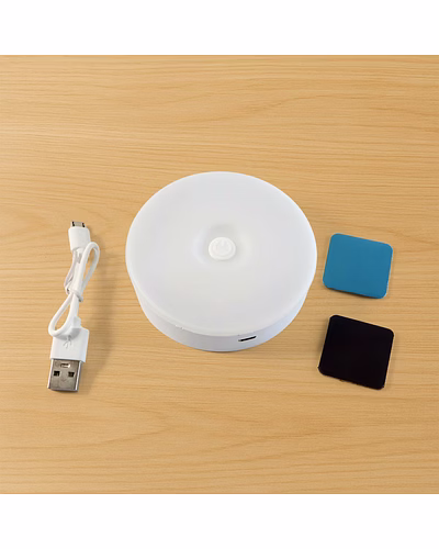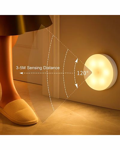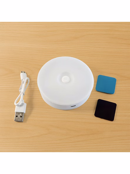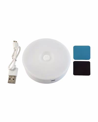 Rechargeable Motion Sensor Night Light – Round Magnetic PIR Body-Induction LED Lamp with On/Off, Touch Switch & USB Charging for Bedroom, Hallway, Wardrobe, Stairs & Kitchen Description :-Light your way safely and comfortably with this compact, rechargeable night light. A built-in PIR body-induction sensor turns the LED on automatically when it detects movement in low light and switches off after a short delay to conserve power. The soft, glare-free glow is gentle on sleepy eyes—perfect for late-night trips without disturbing others. The slim round body mounts in seconds using the included metal plate and adhesive pad, creating a convenient magnetic dock so the lamp can be lifted off for handheld use or charging. With USB charging, no wiring, and a clean modern look, it’s an effortless upgrade for any corner that needs instant, hands-free lighting. Key Features :- PIR motion sensor for automatic illumination in dark environments Auto-off after inactivity to extend battery life Rechargeable via USB—no disposable batteries required Soft, eye-comfort LED glow suitable for night navigation Magnetic mounting system with adhesive metal plate for tool-free install and easy removal One-touch switch for manual control / mode selection (as provided) Compact, lightweight, and portable; works anywhere without wiring Ideal For :- Bedrooms, kid’s rooms, nurseries and hallways for night-time guidance Staircases, entrances, kitchens and washrooms as hands-free guide lights Wardrobes, cabinets, pantries and storage areas that need instant task lighting Elder-friendly and rental homes where drilling/wiring isn’t feasible Travel and emergency lighting as a quick, rechargeable lamp Specifications :- Product Type: Rechargeable PIR motion sensor LED night light Sensor: Passive Infrared (body-induction) with auto on/off in low light Light Source: Energy-efficient LED (soft/warm output as available) Power: Built-in rechargeable battery; USB charging Mounting: Magnetic back with metal plate + adhesive pad (tool-free) Operation: Auto mode via sensor; touch button for manual operation/mode (as applicable) Care: Wipe with a soft dry cloth; keep away from water and extreme heat; charge periodically Keywords :- rechargeable night light , motion sensor LED light , magnetic night lamp , round LED lamp, touch switch night light , USB charging lamp , bedroom night light , hallway sensor light, wardrobe LED light , stair safety lamp , wireless night lamp , energy-saving LED light, portable rechargeable lamp , home safety light , smart night light Dimension :- Volu. Weight (Gm) :- 64 Product Weight (Gm) :- 59 Ship Weight (Gm) :- 64 Length (Cm) :- 9 Breadth (Cm) :- 10 Height (Cm) :- 3