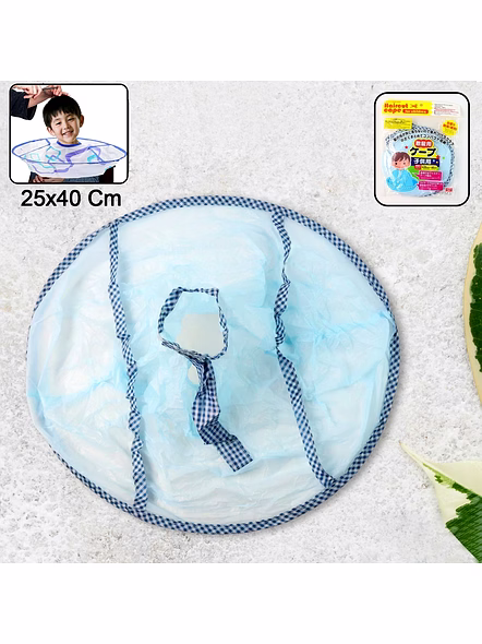 Reusable Hair Cutting Cape Umbrella with Neck Loop & Hair-Catch Guard – No-Mess Barber Cape for Home Trims, Kids & Adults, Foldable Anti-Static Salon Accessory Description :- Make haircuts at home neat and stress-free with this reusable hair-cutting cape umbrella. The wide circular guard surrounds the shoulders to catch falling hair before it reaches the neck, clothes, or floor—so cleanup is quick and easy. A comfortable neck loop helps position the cape, while the light, wipe-clean body resists clinging strands. When you’re done, it folds flat to store in a drawer. Ideal for children and adults alike, this simple tool keeps your space tidy and your skin itch-free during trims, bangs touch-ups, and clipper cuts. Key Features :- Hair-catch design: Raised umbrella shape collects cut hair for fast, mess-free cleanup. Comfort neck loop: Helps seat the cape securely around the collar area for better coverage. Lightweight & anti-static: Smooth body sheds hair easily and wipes clean after use. Foldable storage: Pops open for use and folds flat when finished; travel-friendly. Hygienic & reusable: Rinse or wipe and reuse; no disposable sheets required. Universal fit: Suitable for kids and adults for home trimming or salon backup. Ideal For :- Parents cutting children’s hair at home Quick fringe/bangs trims and clipper touch-ups Keeping clothes and floor free from hair during DIY grooming Travel kits and small salons that need a compact, easy-clean cape Specifications :- Product Type: Hair Cutting Cape / Hair-Catch Umbrella Material Class: Lightweight plastic film with fabric edging and neck loop Closure/Support: Loop/strap at the neck; free-standing umbrella skirt to catch hair Care: Wipe clean or rinse and air-dry; folds for storage Reusability: Multiple-use household grooming accessory Keywords :- hair cutting cape , hair cutting umbrella , reusable barber cape , hair catcher cape , haircut cape with neck loop , foldable haircut cape , hair cutting cape with hair catcher, barbershop cape , haircutting apron , professional hair cutting cape , self-haircut cape , salon accessory , hairdressing cape , hair trimming umbrella , haircut cape with guard, haircut protector Dimension :- Volu. Weight (Gm) :- 415 Product Weight (Gm) :- 56 Ship Weight (Gm) :- 415 Length (Cm) :- 23 Breadth (Cm) :- 22 Height (Cm) :- 4