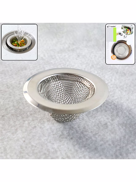 Stainless Steel Kitchen Sink Drain Strainer / Stopper – Deep Basket Hole Filter with Easy-Lift Rim for Food Waste & Hair, Anti-Clog, Rust-Resistant for Sink, Washbasin & Utility Drains (Extra Small / 1 Pc) Description :-Keep your sink pipes clear and odor-free with this durable stainless-steel drain strainer. The deep basket design captures food scraps, tea leaves, vegetable peels, and hair before they enter the drain, while the precision-punched holes maintain fast water flow. A smooth, raised rim makes lifting and emptying effortless, and the one-piece steel body resists rust, dents, and deformation with daily use. Simply place it in the drain opening, rinse when full, and reuse—no chemicals or complicated fittings required. A clean, minimalist finish blends neatly with modern kitchens and bathrooms. Key Features :- Deep basket traps debris effectively while allowing quick water drainage Rust-resistant stainless steel for long service life and easy cleaning Smooth rolled rim for comfortable, safe handling and easy removal One-piece sturdy build—no joints or mesh that fray or trap residue Low-maintenance: rinse under running water or tap out waste into a bin Universal utility for kitchen sinks, bathroom basins, laundry/utility areas Ideal For :- Daily kitchen use to catch food particles and prevent pipe blockages Bathroom washbasins to collect hair and soap residue Rental homes, hostels, cafés, salons, and canteens needing quick preventive hygiene Households seeking a chemical-free method to keep drains clear Specifications :- Product Type: Reusable drain strainer / basket filter Material: Stainless steel (rust-resistant) Design: Deep basket with precision-punched holes; smooth lift rim Placement: Sits directly in the drain mouth; no tools needed Care: Empty solids into bin; rinse and wipe dry for best longevity Use Environment: Kitchen, bathroom, utility sinks (indoor) Keywords :- stainless steel kitchen sink drain strainer , sink stopper , deep basket sink filter , food waste strainer , hair catcher for sink , kitchen sink accessory , washbasin drain stopper , stainless steel drain cover , sink protector , kitchen drain basket , removable sink filter , durable stainless steel stopper , bathroom sink strainer , metal sink filter basket Dimension :- Volu. Weight (Gm) :- 52 Product Weight (Gm) :- 12 Ship Weight (Gm) :- 52 Length (Cm) :- 10 Breadth (Cm) :- 7 Height (Cm) :- 3