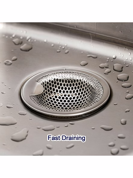Stainless Steel Kitchen Sink Drain Strainer / Stopper – Deep Basket Hole Filter with Easy-Lift Rim for Food Waste & Hair, Anti-Clog, Rust-Resistant for Sink, Washbasin & Utility Drains (Medium / 1 Pc) Description :-Keep your sink pipes clear and odor-free with this durable stainless-steel drain strainer. The deep basket design captures food scraps, tea leaves, vegetable peels, and hair before they enter the drain, while the precision-punched holes maintain fast water flow. A smooth, raised rim makes lifting and emptying effortless, and the one-piece steel body resists rust, dents, and deformation with daily use. Simply place it in the drain opening, rinse when full, and reuse—no chemicals or complicated fittings required. A clean, minimalist finish blends neatly with modern kitchens and bathrooms. Key Features :- Deep basket traps debris effectively while allowing quick water drainage Rust-resistant stainless steel for long service life and easy cleaning Smooth rolled rim for comfortable, safe handling and easy removal One-piece sturdy build—no joints or mesh that fray or trap residue Low-maintenance: rinse under running water or tap out waste into a bin Universal utility for kitchen sinks, bathroom basins, laundry/utility areas Ideal For :- Daily kitchen use to catch food particles and prevent pipe blockages Bathroom washbasins to collect hair and soap residue Rental homes, hostels, cafés, salons, and canteens needing quick preventive hygiene Households seeking a chemical-free method to keep drains clear Specifications :- SKU: 17583 Product Type: Reusable drain strainer / basket filter Material: Stainless steel (rust-resistant) Design: Deep basket with precision-punched holes; smooth lift rim Placement: Sits directly in the drain mouth; no tools needed Care: Empty solids into bin; rinse and wipe dry for best longevity Use Environment: Kitchen, bathroom, utility sinks (indoor) Keywords :- stainless steel sink strainer, kitchen sink drain stopper, deep basket sink filter, sink drain strainer, food waste catcher, hair filter for sink,washbasin drain filter, utility sink drain cover, kitchen sink accessory, stainless steel drain basket, sink waste filter Dimension :- Volu. Weight (Gm) :- 52 Product Weight (Gm) :- 23 Ship Weight (Gm) :- 52 Length (Cm) :- 13 Breadth (Cm) :- 8 Height (Cm) :- 2
