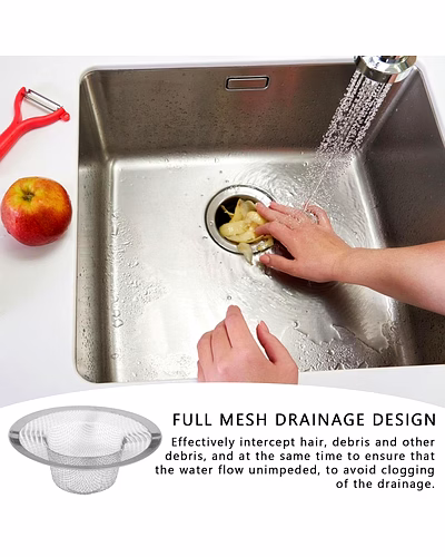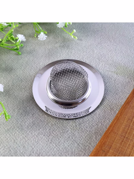 Stainless Steel Kitchen Sink Drain Strainer / Stopper – Deep Basket Hole Filter with Easy-Lift Rim for Food Waste & Hair, Anti-Clog, Rust-Resistant for Sink, Washbasin & Utility Drains (Small (7 Cm)/ 1 Pc) Description :-Keep your sink pipes clear and odor-free with this durable stainless-steel drain strainer. The deep basket design captures food scraps, tea leaves, vegetable peels, and hair before they enter the drain, while the precision-punched holes maintain fast water flow. A smooth, raised rim makes lifting and emptying effortless, and the one-piece steel body resists rust, dents, and deformation with daily use. Simply place it in the drain opening, rinse when full, and reuse—no chemicals or complicated fittings required. A clean, minimalist finish blends neatly with modern kitchens and bathrooms. Key Features :- Deep basket traps debris effectively while allowing quick water drainage Rust-resistant stainless steel for long service life and easy cleaning Smooth rolled rim for comfortable, safe handling and easy removal One-piece sturdy build—no joints or mesh that fray or trap residue Low-maintenance: rinse under running water or tap out waste into a bin Universal utility for kitchen sinks, bathroom basins, laundry/utility areas Ideal For :- Daily kitchen use to catch food particles and prevent pipe blockages Bathroom washbasins to collect hair and soap residue Rental homes, hostels, cafés, salons, and canteens needing quick preventive hygiene Households seeking a chemical-free method to keep drains clear Specifications :- SKU: 17583 Product Type: Reusable drain strainer / basket filter Material: Stainless steel (rust-resistant) Design: Deep basket with precision-punched holes; smooth lift rim Placement: Sits directly in the drain mouth; no tools needed Care: Empty solids into bin; rinse and wipe dry for best longevity Use Environment: Kitchen, bathroom, utility sinks (indoor) Keywords :- stainless steel sink strainer , kitchen sink drain stopper , deep basket strainer , sink hole filter , hair catcher drain filter , washbasin drain filter , utility sink strainer , kitchen drain basket , stainless steel drain cover , sink waste filter Dimension :- Volu. Weight (Gm) :- 75 Product Weight (Gm) :- 19 Ship Weight (Gm) :- 75 Length (Cm) :- 12 Breadth (Cm) :- 9 Height (Cm) :- 3